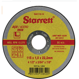 DISCO DE CORTE AC. CARBONO E INOXIDABLE 115 x 1 MM
